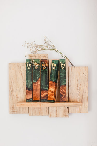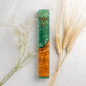 Handcrafted Mezuzah – Olive Wood & Emerald Epoxy